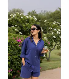 Royal Ease Co-ord Set – Oversized Cotton Comfort in Blue