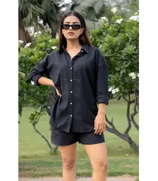 Royal Ease Co-ord Set – Oversized Cotton Comfort in Black