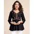 Black & Red Floral Embroidered Longline A-Line Top with Shirt...