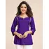 Purple Floral Embroidered V-Neck A-Line Top with Three-Quarter Sleeves