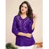 Purple Floral Embroidered A-Line Top with Mandarin Collar & Puff Sleeves – Graceful & Versatile