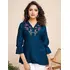 Teal Embroidered A-Line Top with Three-Quarter Sleeves