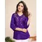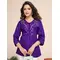 Purple Floral Embroidered V-Neck A-Line Top with Three-Quarter Sleeves