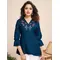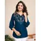 Teal Embroidered A-Line Top with Three-Quarter Sleeves