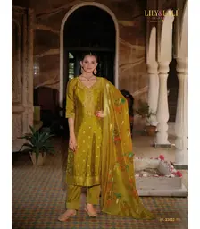Suit Sets: The suit sets are a perfect blend of grace and comfort, meticulously crafted with beautiful embroideries, vibrant colours, and luxurious fabrics like cotton, organza, silk, etc. These stylish kurtis for women are ideal for both casual outings and festive occasions.