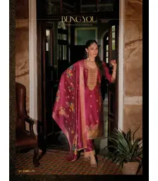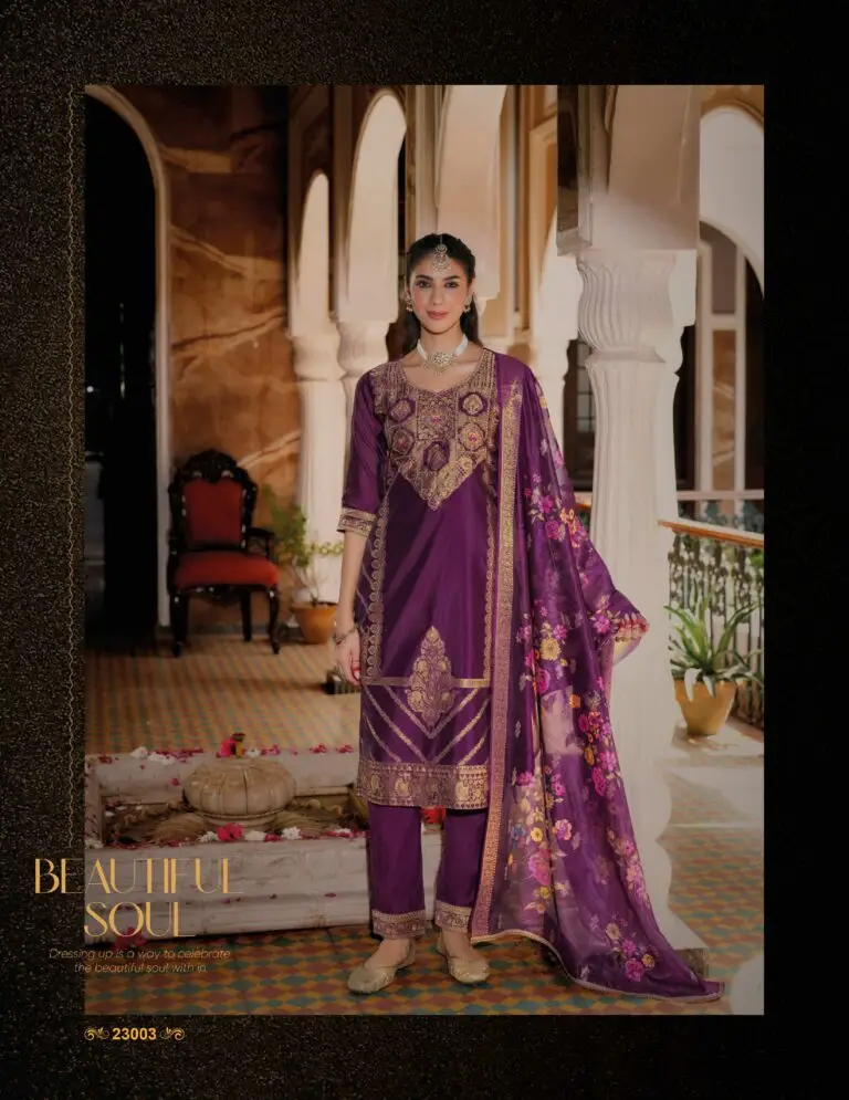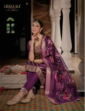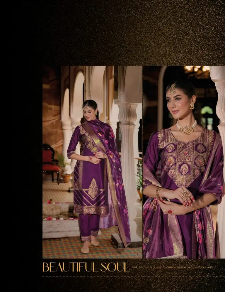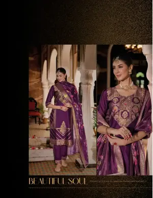 - Topwear: Fancy new silk fabrics with embroidery and handwork, often lined for structure and comfort. - Bottomwear: Divider-style pants with Kali work, typically crafted from soft synthetic or cotton blends. - Dupatta: Made from new silk fabrics, adorned with fancy lace and tassels. This mix of silk, cotton, and synthetic materials gives the collection its signature flow, sheen, and wearability—ideal for festive, casual, and semi-formal occasions.