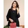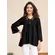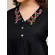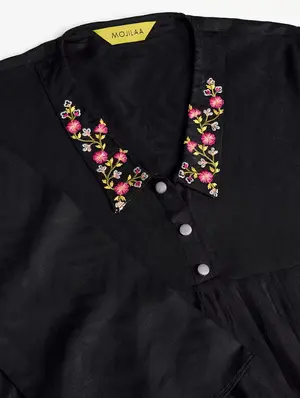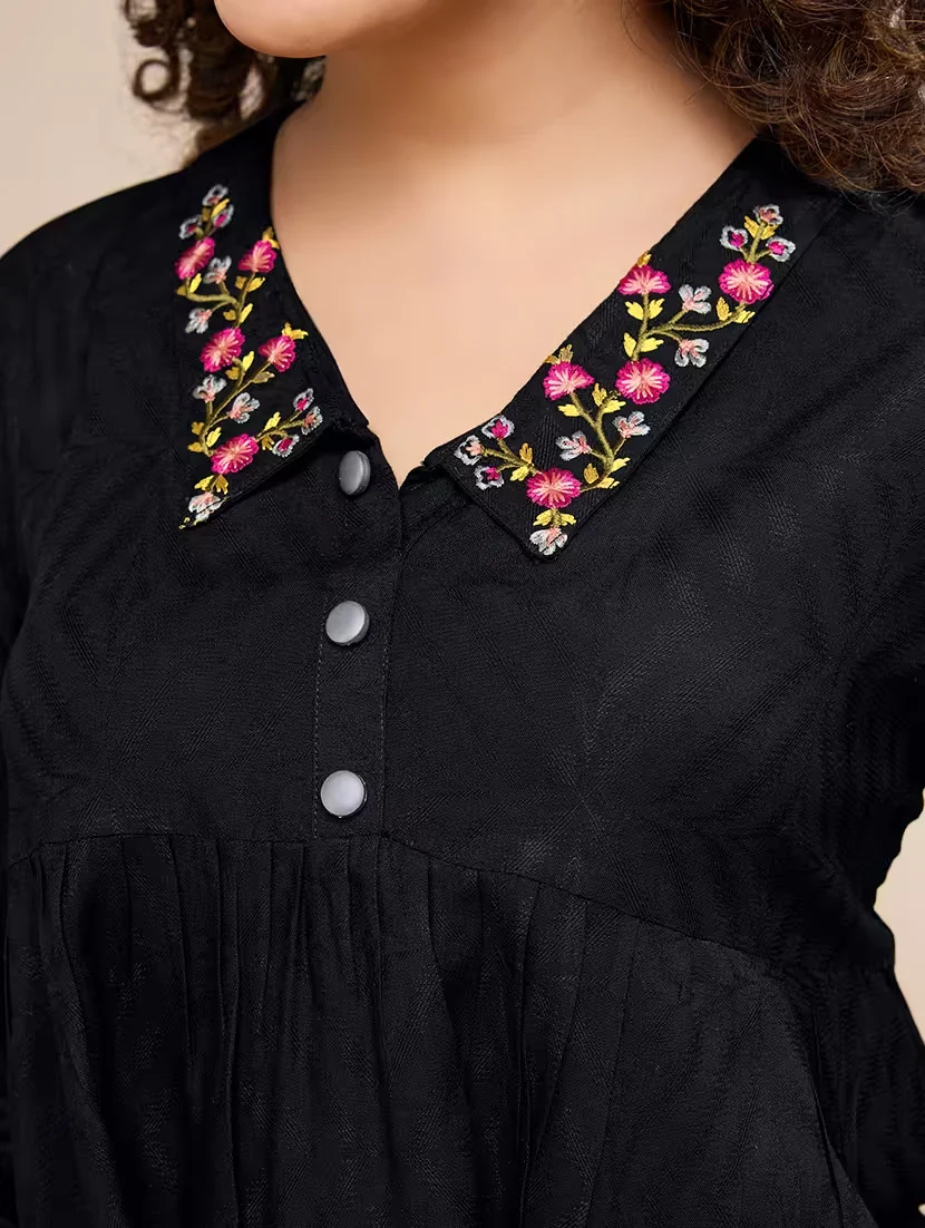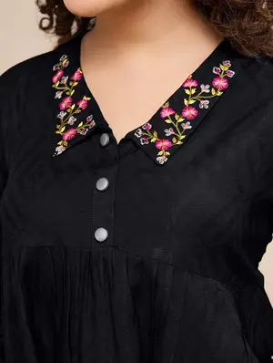 Black & Red Floral Embroidered Longline A-Line Top with Shirt Collar