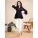 The lapel collar lends a tailored edge, while the three-quarter bell sleeves bring a graceful flow to your look. Whether you're dressing for a festive gathering, a creative workday, or a casual dinner, this top blends sophistication with flair. Pair it with cigarette pants or flared trousers for a head-turning ensemble.