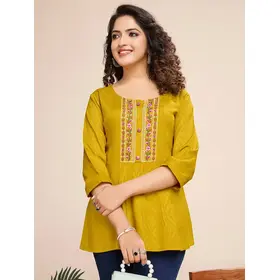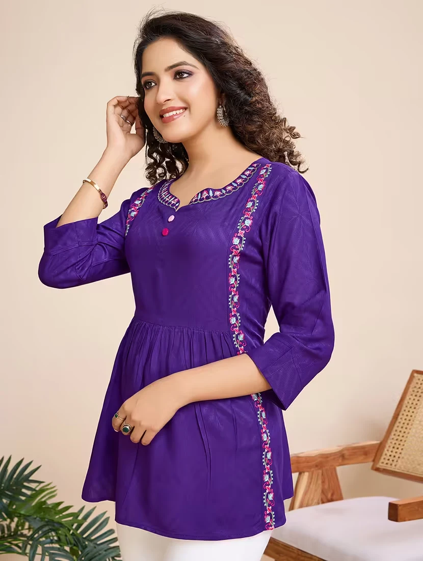 Perfect for festive occasions, cultural events, or elegant daywear, this top pairs beautifully with straight pants, palazzos, or even denim for a fusion look. The breathable fabric and detailed craftsmanship make it a wardrobe essential for women who love ethnic elegance with modern flair.