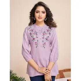 Radiate warmth and grace with our Purple Floral Embroidered A-Line Top—crafted for women who embrace timeless style with a modern twist. This regular-fit silhouette flatters all body types with its gentle drape, while the vibrant purple hue adds a regal touch to your wardrobe.
