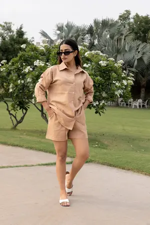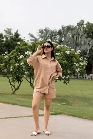 Elevate your casual wardrobe with the Royal Brown Oversized Cotton Shirt & Shorts Set. Crafted from a breathable linen-cotton blend, this set promises both style and durability. Available in sizes XS to 4XL, it features a relaxed fit and an elasticated waistband on the shorts for maximum comfort.