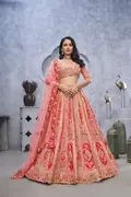 Organza Silk Intricate Paisley Motifs Traditional Embroidered Wedding Lehenga Choli With Soft Net Dupatta
