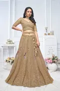 Graceful Brown Embroidered bridal wear lehenga