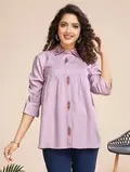 Mauve Floral Embroidered Shirt-Style Top with Puff Sleeves & Shirt Collar