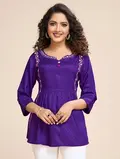 Purple & Pink Ethnic Embroidered Peplum Longline Top in Woven Chiffon