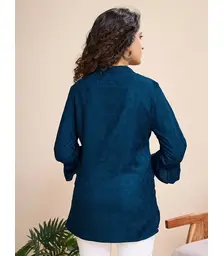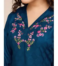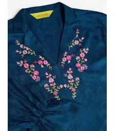 Teal Bloom: Women’s Floral Embroidered Puff Sleeve Shirt-Styl...