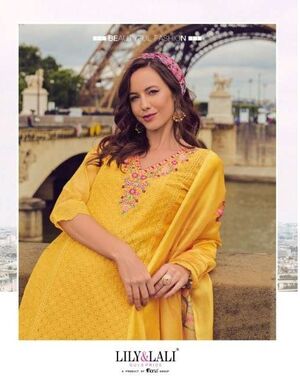 Step into a world of sophisticated grace with the Nusrat Collection by Lily & Lali. This boutique 3-piece suit set combines the airy charm of Chanderi with the artistic detail of Schiffli embroidery, creating a look that is both timeless and trendy.