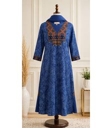 Rama Blue Floral Woven suit set with dupatta