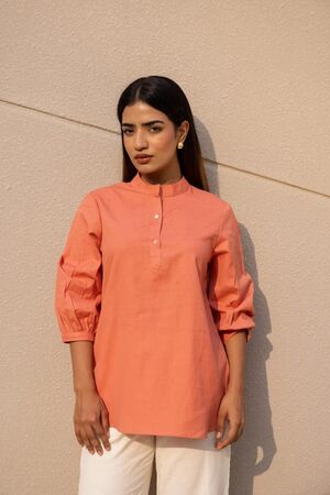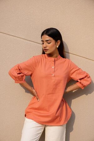 • 1 Peach Cotton Short Kurta