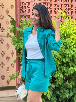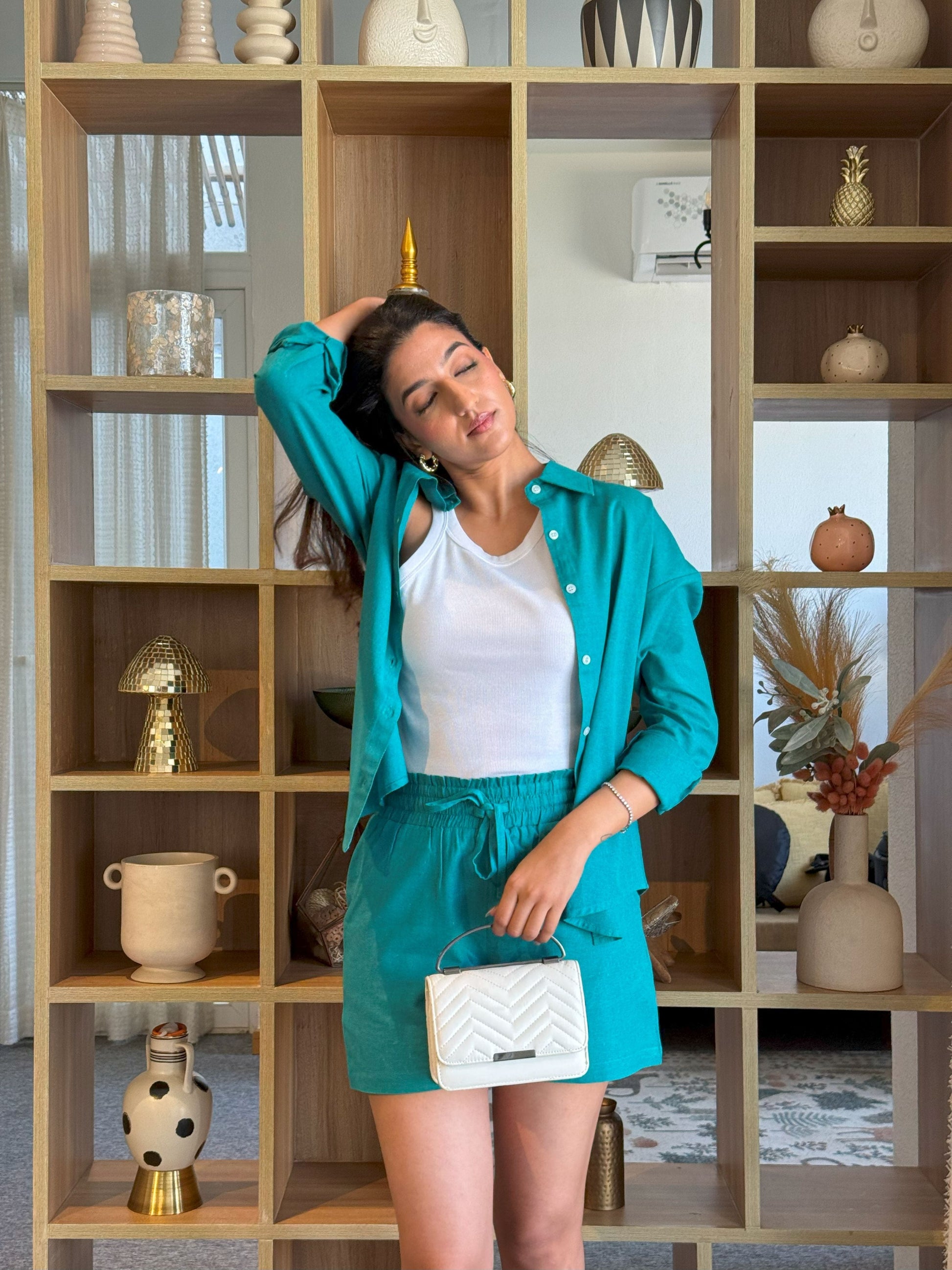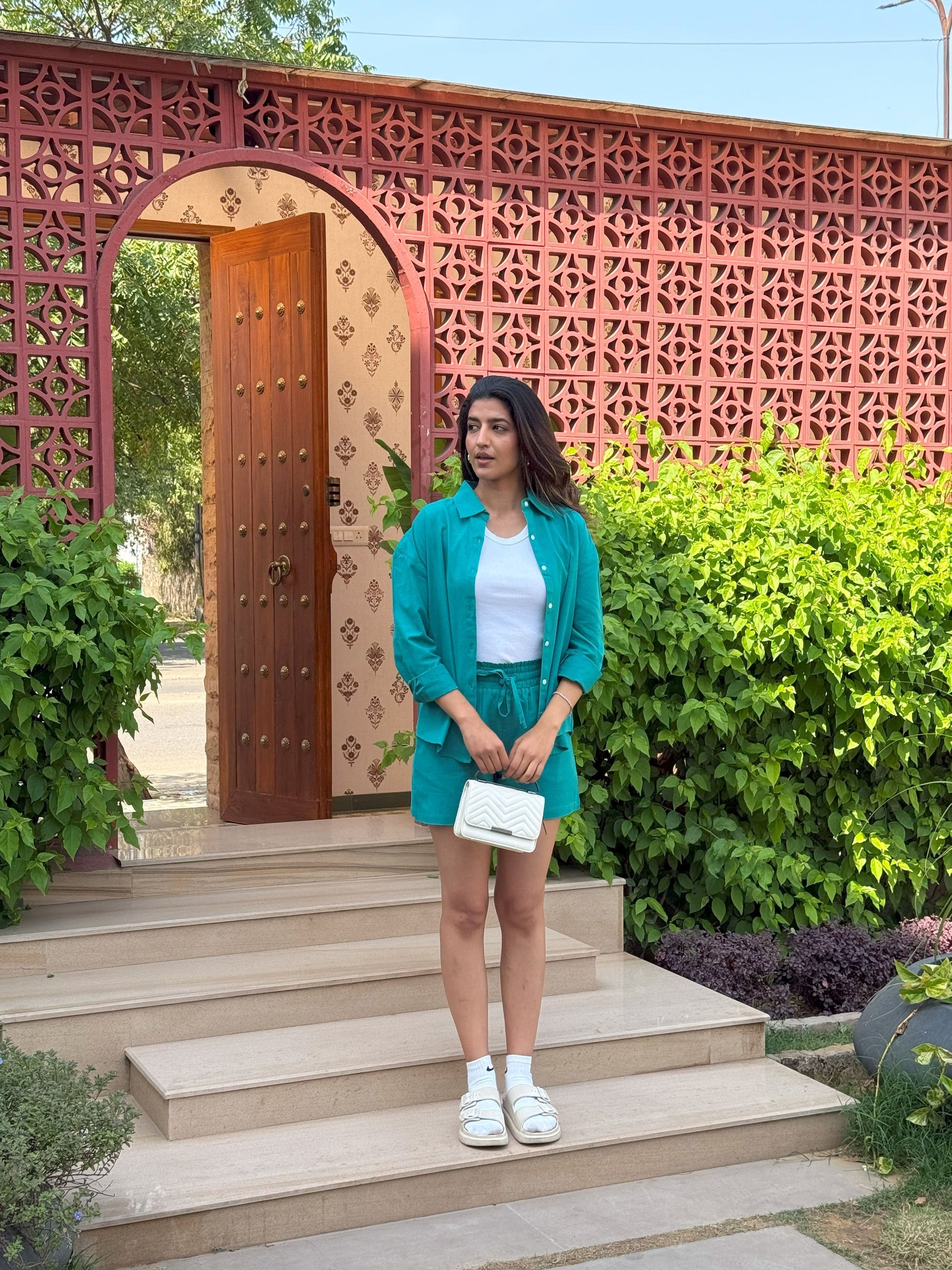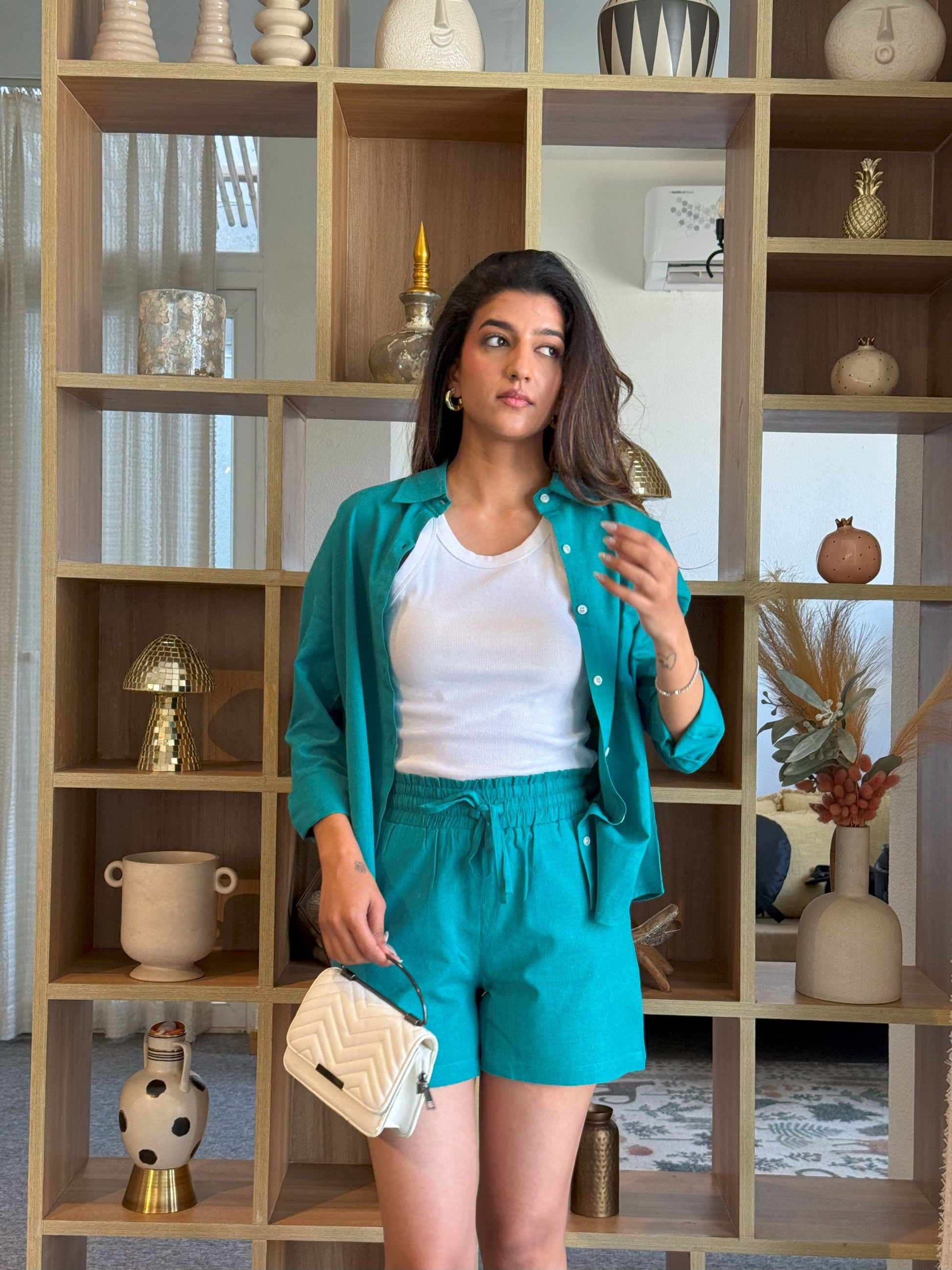 Stay effortlessly chic and comfy with the Teal Oversized Cotton Shirt & Shorts Set. Made from a breathable linen-cotton blend, this set is as durable as it is stylish. Available from XS to 4XL, it features a relaxed fit and an elasticated waistband for ultimate ease.