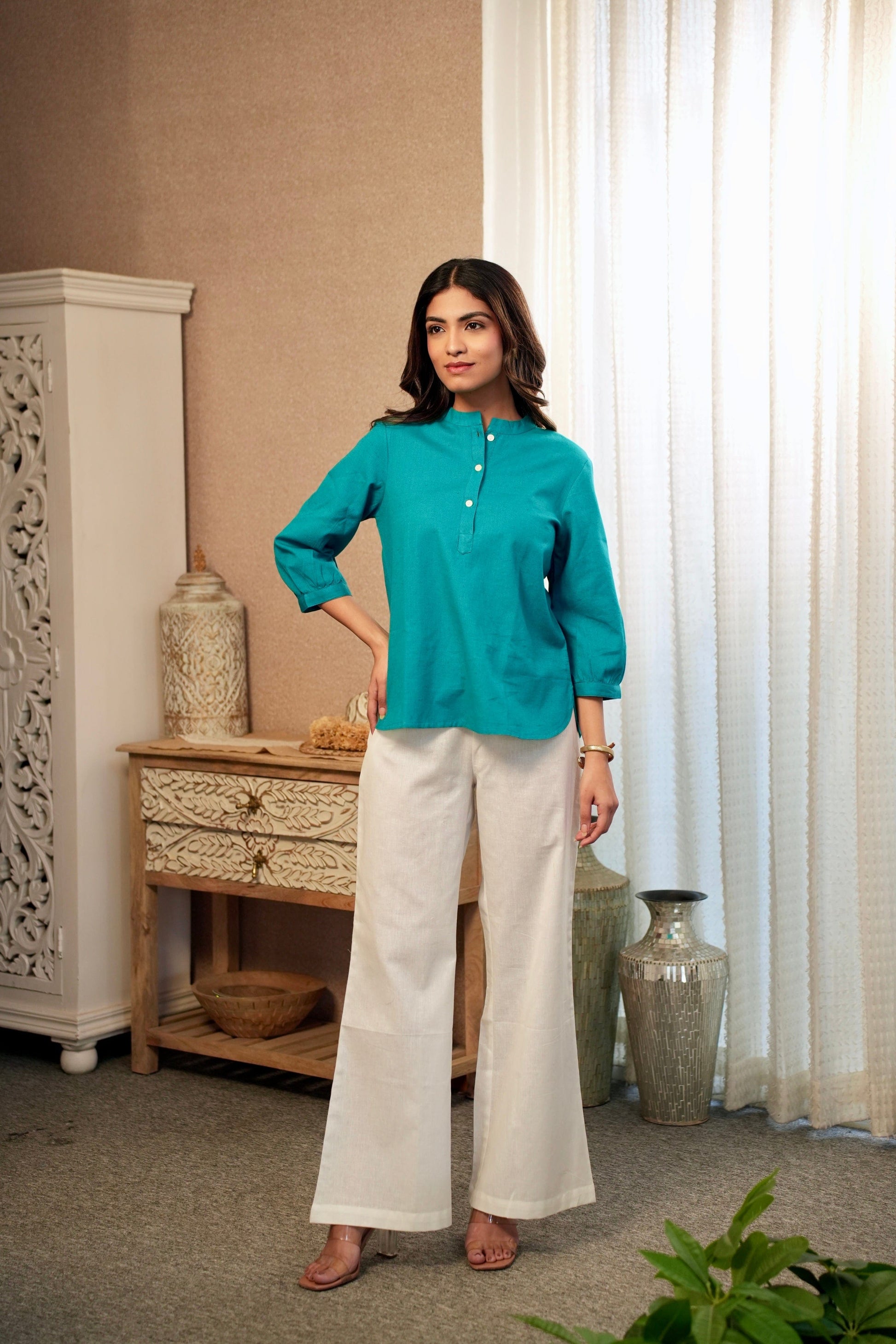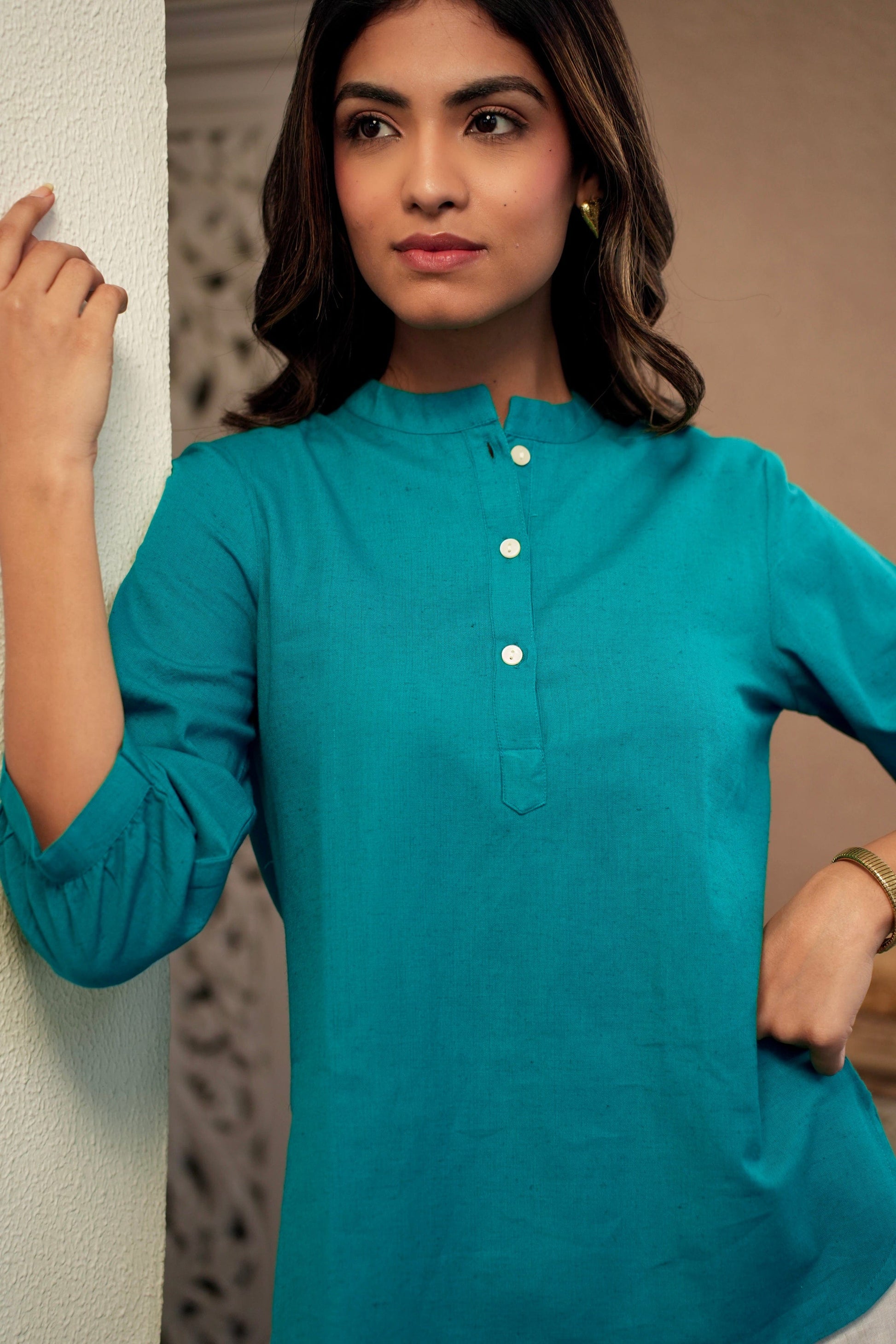 Step into refined style with the Teal Short Kurta. Ideal for any casual occasion, it blends comfort with a striking color for a standout look!