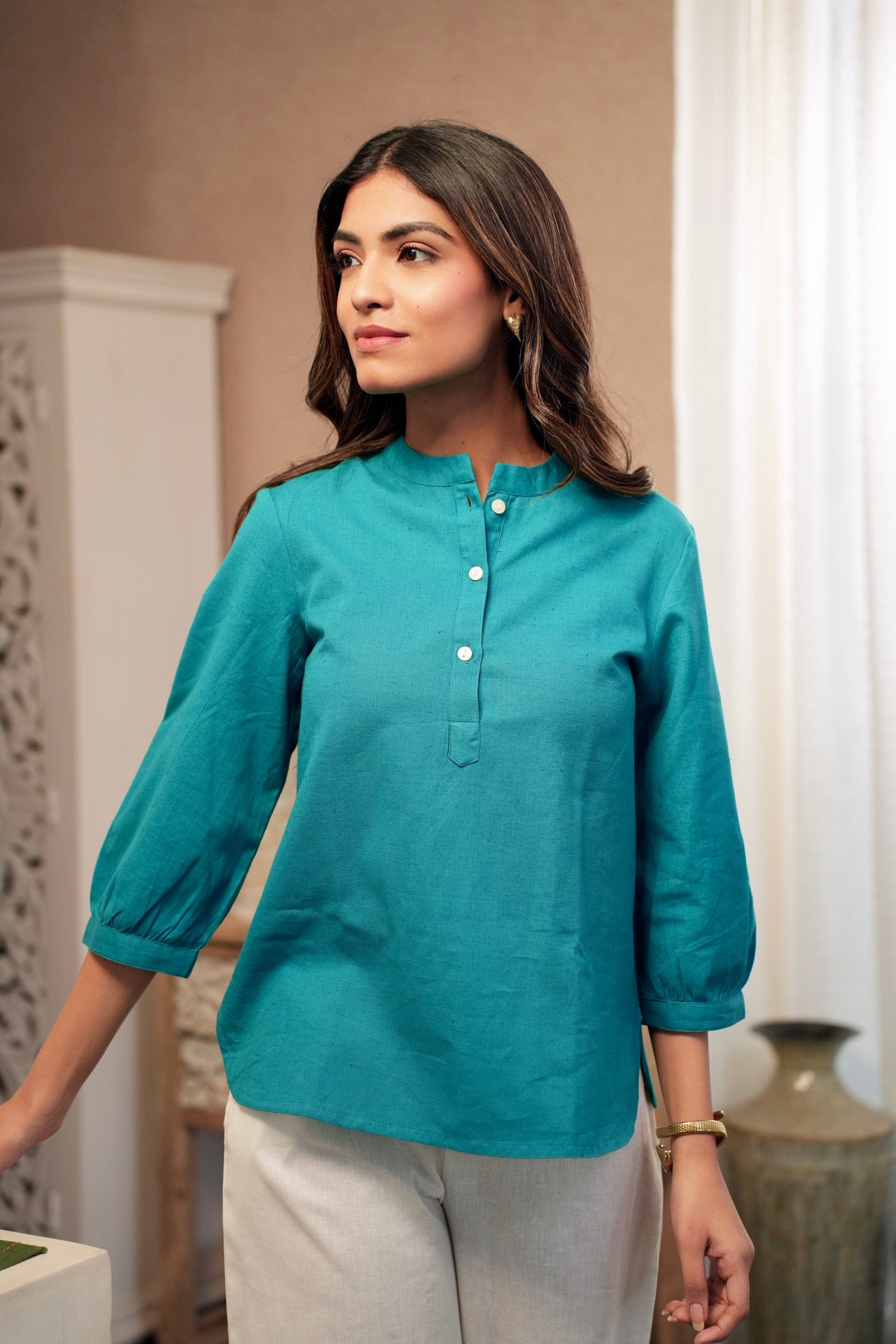 - 1 Teal Cotton Short Kurta