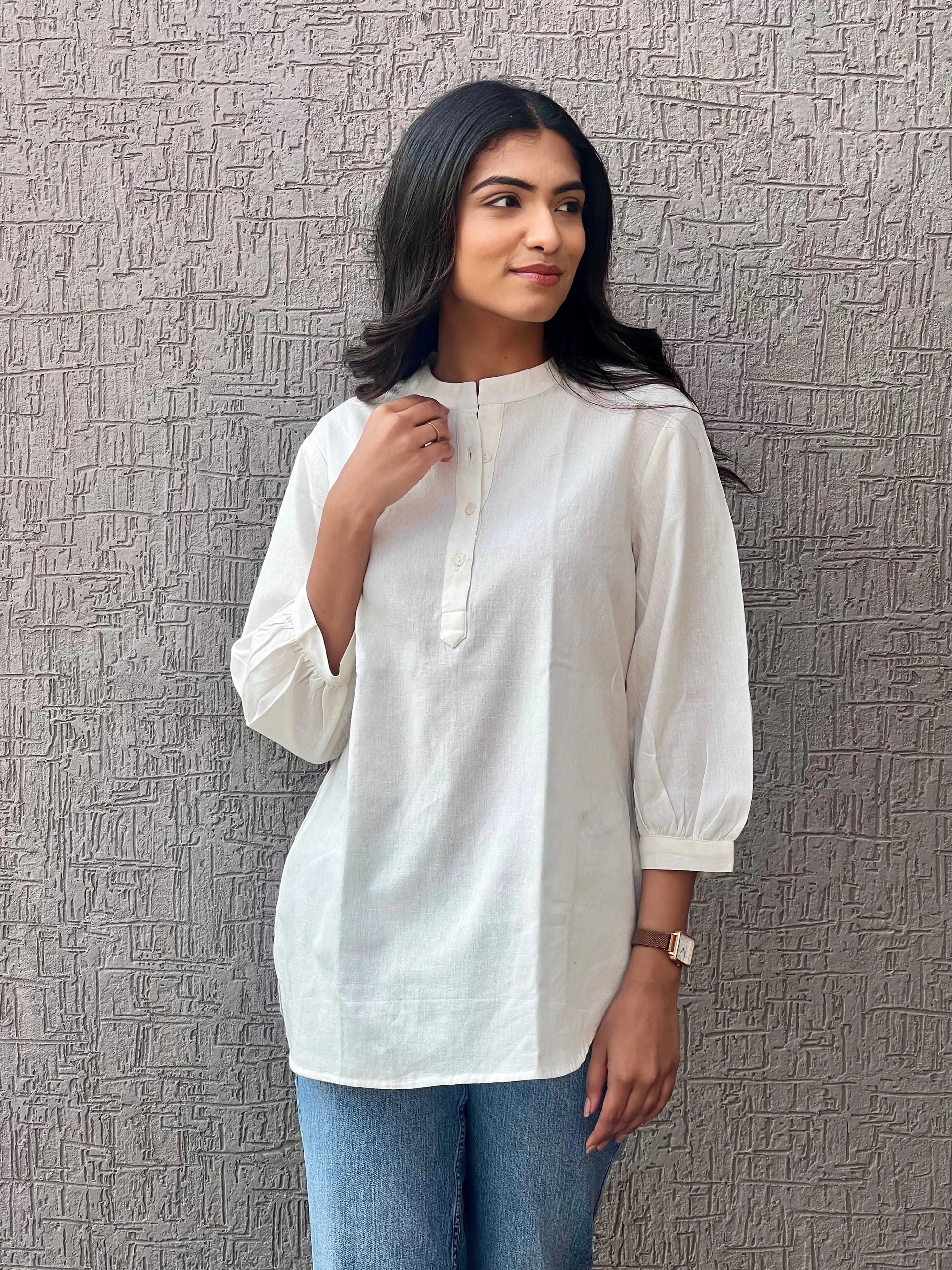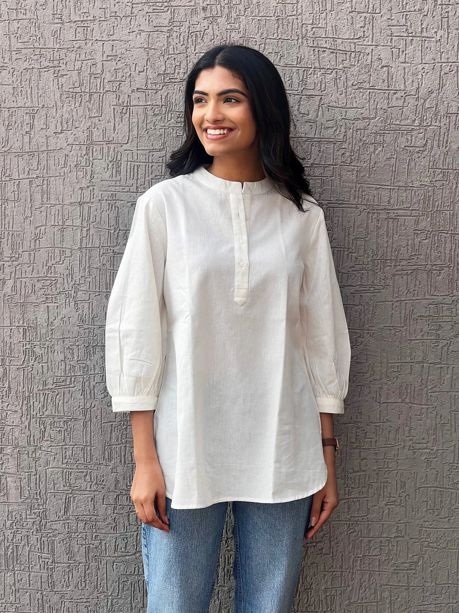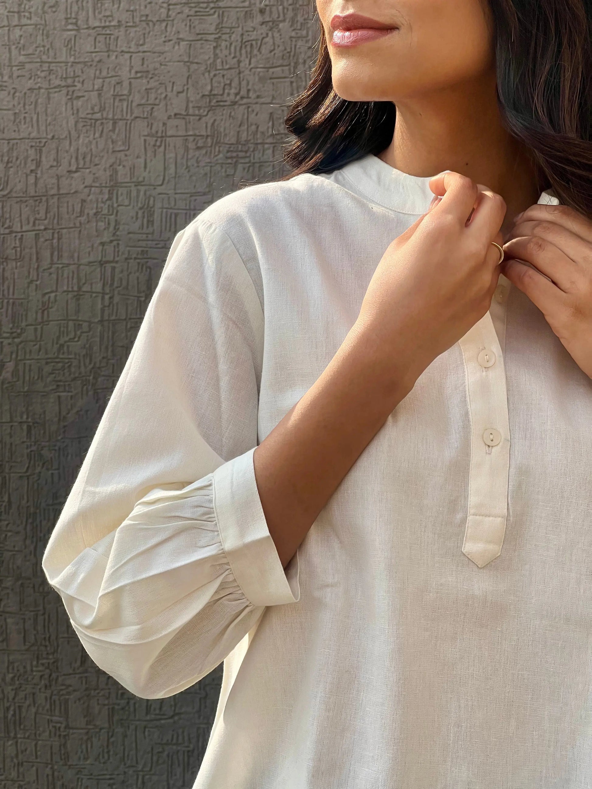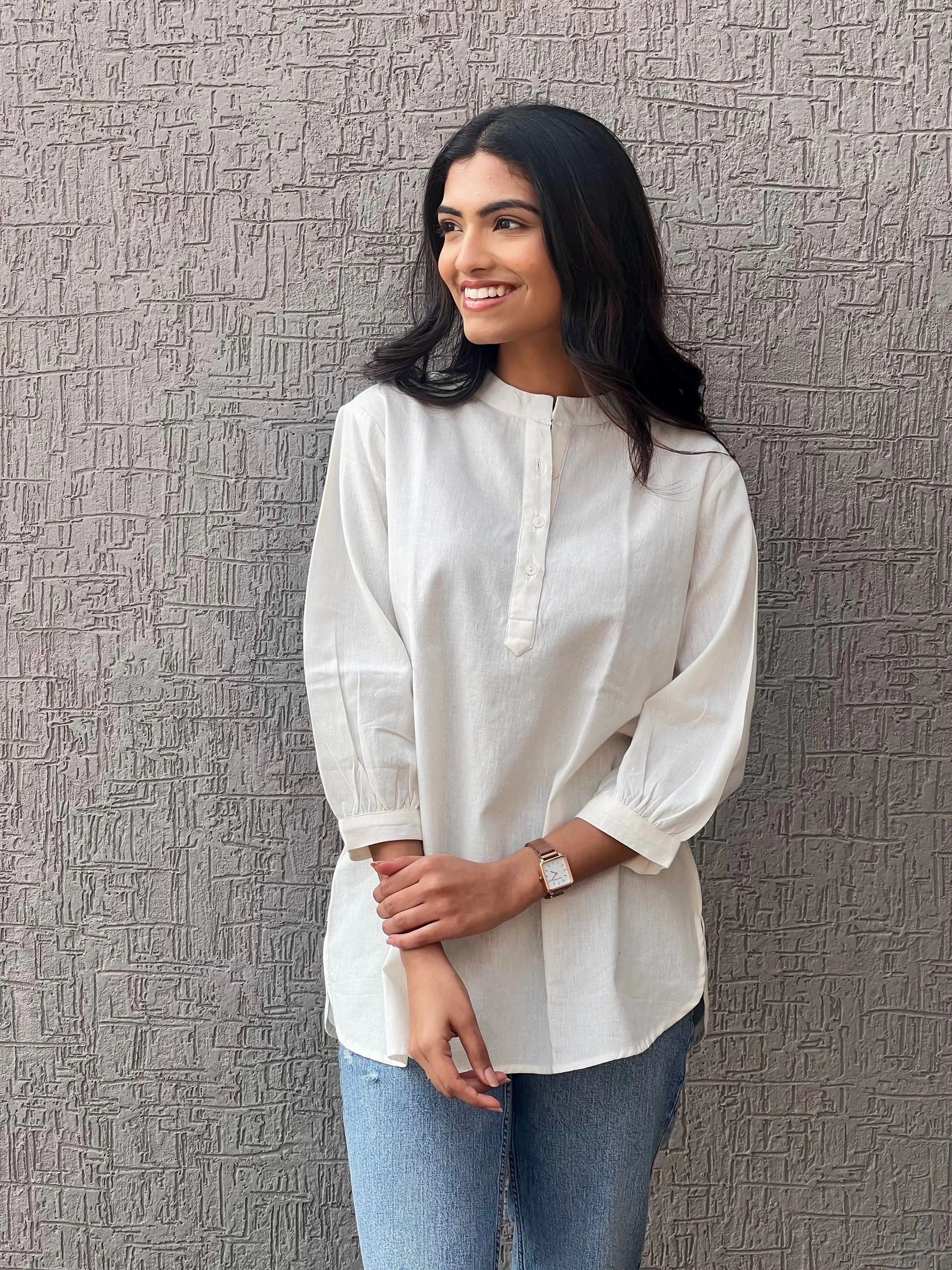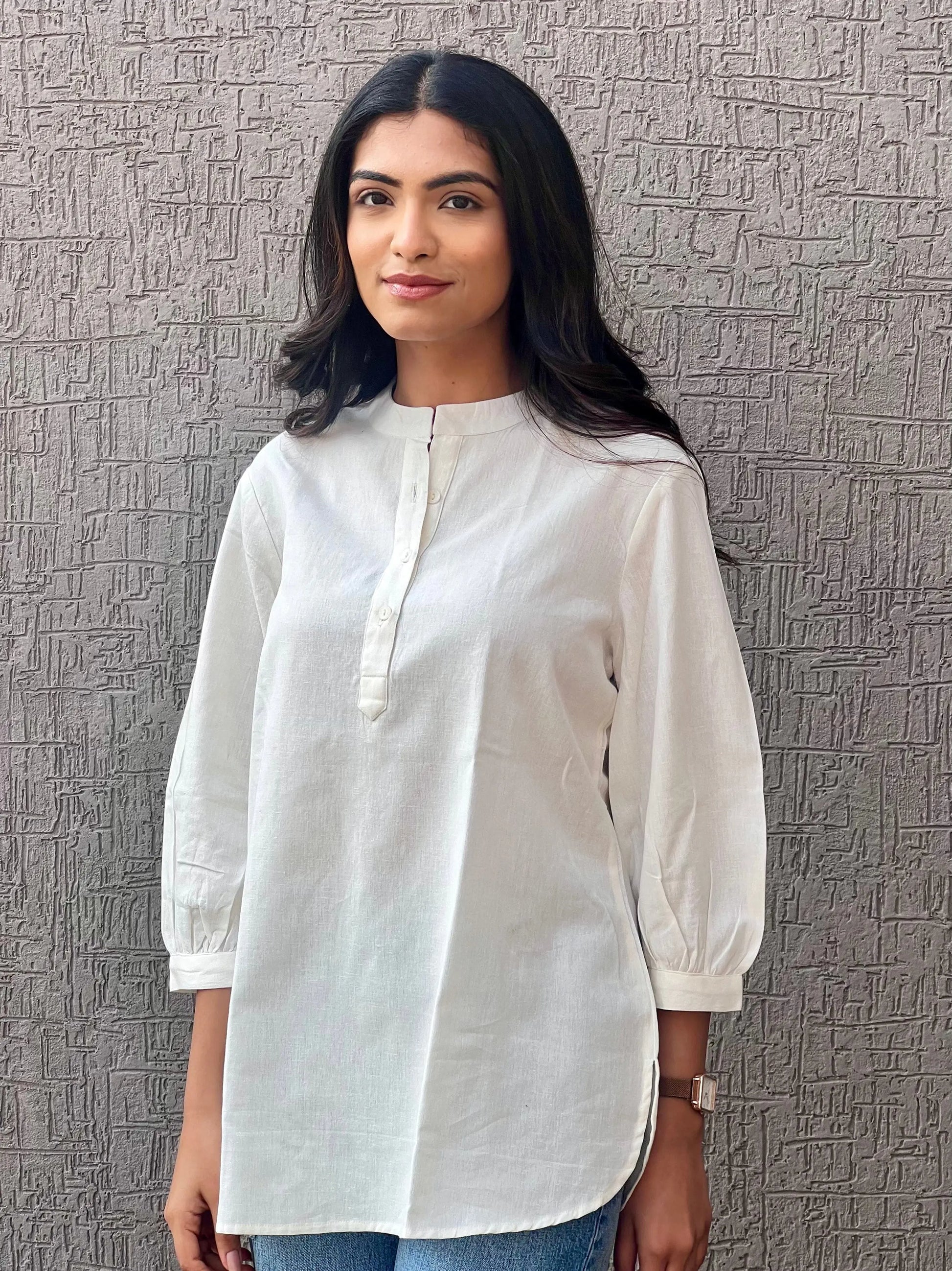 Step up your casual game with the White Short Kurta! Crafted from a premium linen blend, this kurta features a regular fit and is available in sizes from XS to 4XL. With durable stitching and meticulous detailing, it ensures you look sharp and stylish. Embrace the timeless elegance of white and make a standout statement!