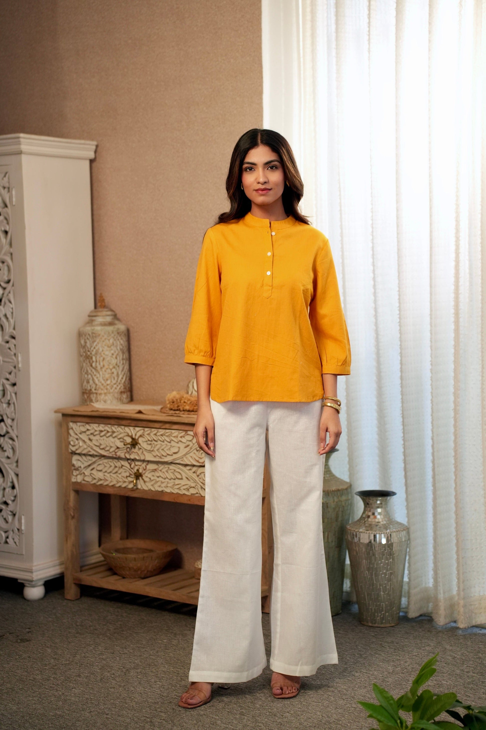 Add a touch of sunshine to your wardrobe with our Yellow Short Kurta. Crafted from lightweight, breathable fabric, this versatile piece features a relaxed fit and classic design, making it perfect for casual outings or festive occasions. Pair it with jeans, leggings, or palazzos for an effortlessly chic look.